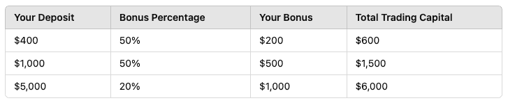 2. The bonus can be used for trading but cannot be withdrawn. Any withdrawal from your account will proportionally reduce the bonus.