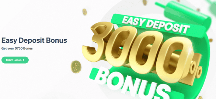 - In the live account, go to the “bonuses” tab on the left-hand side menu. Choose 3000% easy deposit bonus. At the bottom of the page, click on the “Get The Easy Deposit Bonus” button.
